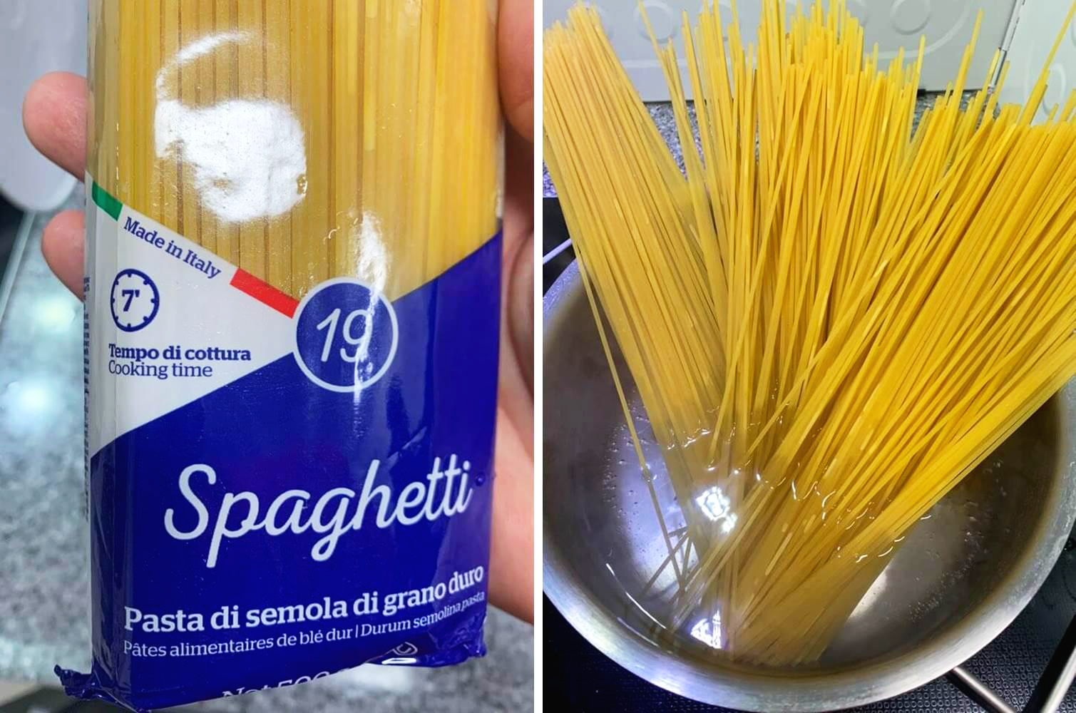 저는 스파게티면을 사용했는데 권장 조리시간은 7분, 저는 알단테보다 더 익은 면을 좋아해서 9~10분 정도 익혀주었어요. 파스타면을 삶을 때는 소금 1T를 넣어주었습니다.