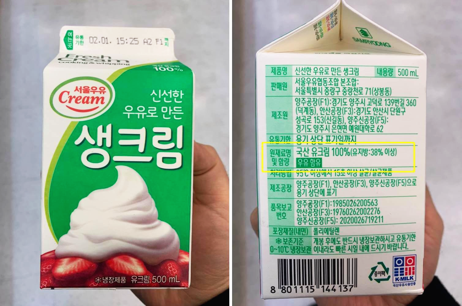 서울우유 생크림 - 국산 유크림 100%(유지방:38% 이상)